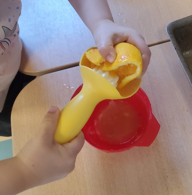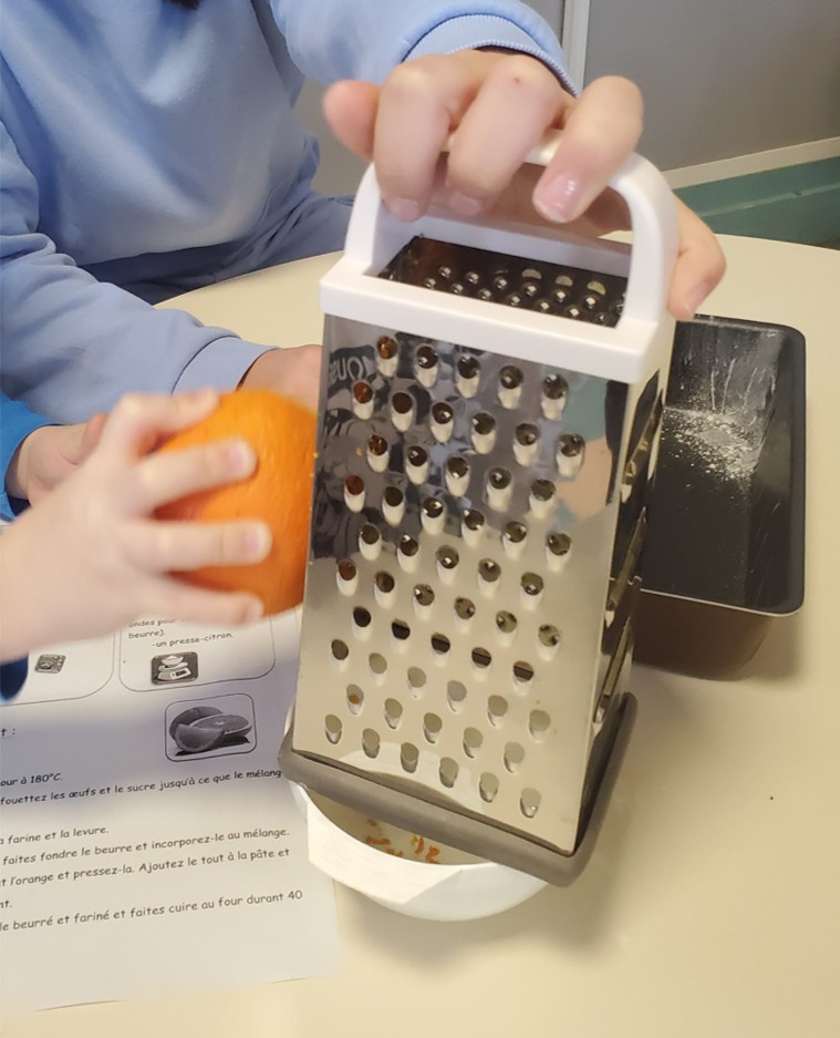 Ils ont râpé les zestes et pressé l’orange, puis mélangé tous les ingrédients.