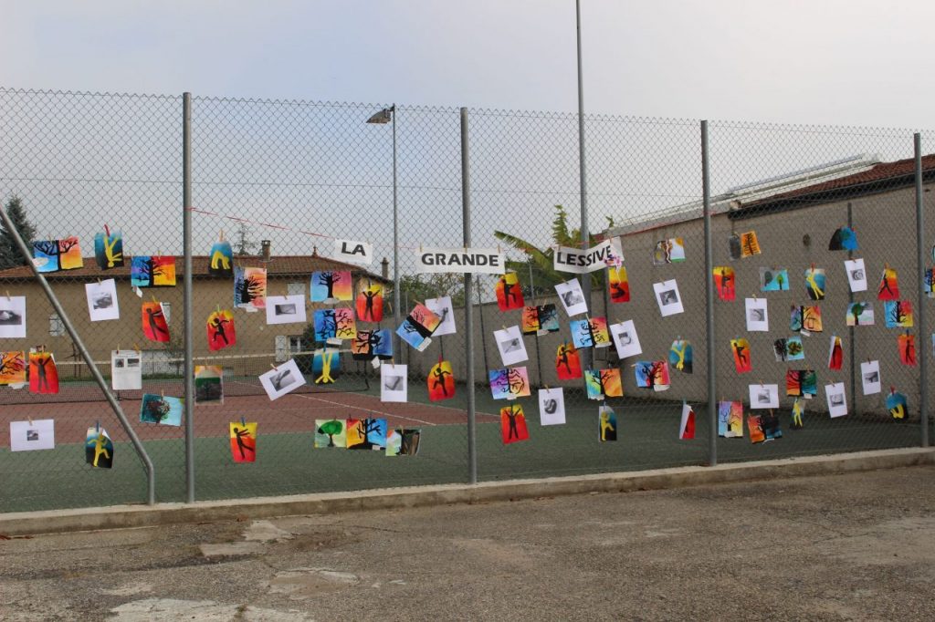 « Nuit et jour, réfléchir les lumières ! » C’était la piste de réflexion proposée cette année par les organisateurs de la Grande lessive. Le résultat de notre travail a été suspendu sur le grillage du tennis, transformé pour l’occasion en lieu d’exposition de plein air.
