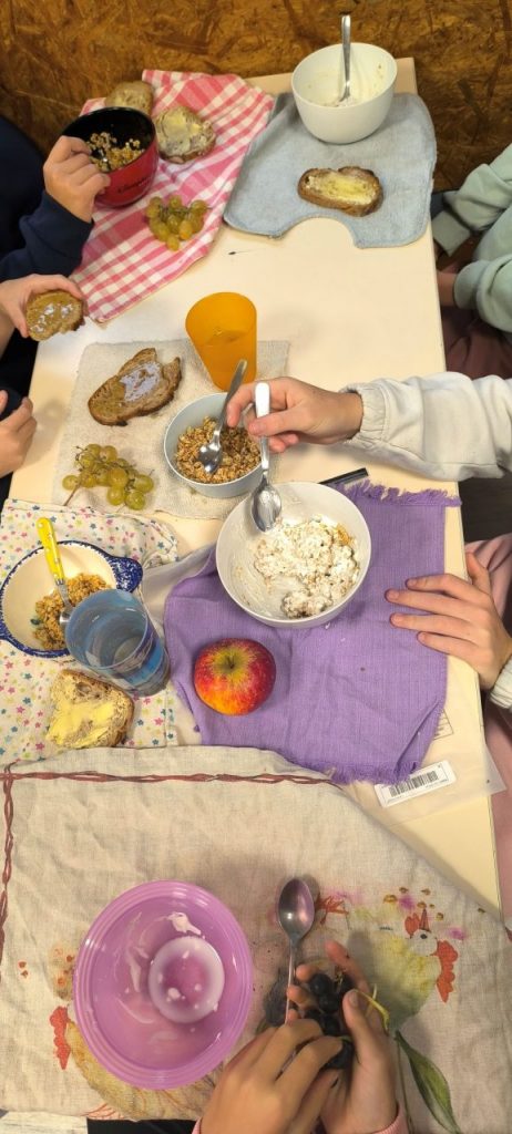 Vendredi 17 octobre, tous les enfants de l’école ont pris leur petit déjeuner dans leur classe. Un moment convivial renouvelé chaque année qui permet de travailler sur les catégories d’aliments, leur origine, leurs apports et sur l’équilibre alimentaire.